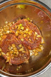 - Prepare the Marinade: In a bowl, combine the lime juice, orange juice, olive oil, Worcestershire sauce, garlic powder, cumin, smoked paprika, chili powder, salt, black pepper, and diced yellow onion. Mix well.